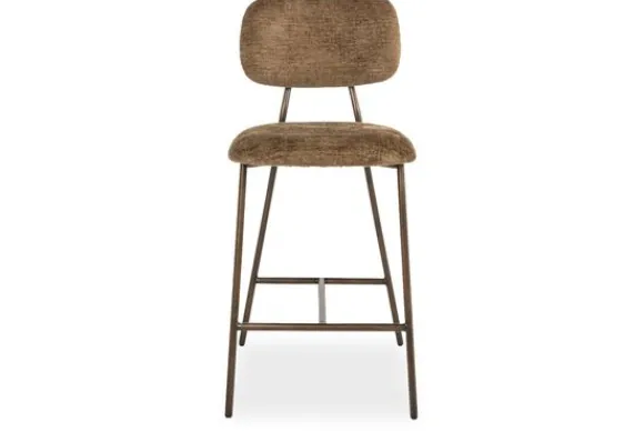 Het metalen frame met een bronzen afwerking zorgt voor een stoere en stabiele basis. Dankzij de voetensteun kun je ontspannen zitten, zelfs tijdens langere momenten aan tafel of de bar.