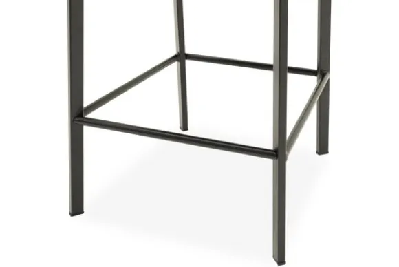 Het onderstel in metaal geeft de kruk een luxe uitstraling en zorgt voor een krachtig evenwicht tussen verfijnde vormgeving en robuuste stabiliteit. De strakke belijning en het open karakter van het frame creëren een luchtige uitstraling die perfect aansluit bij een modern, industrieel of hotel chic interieur.