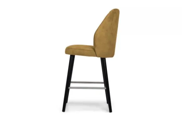 Barkruk Louane van het merk Caggia is verkrijgbaar in alle kleuren en in diverse materiaalsoorten zoals stof, kunstleder en rundleder. Je kunt kiezen uit een lage of een hoge kruk, de lage kruk is 100 cm hoog en heeft een zithoogte van 65 cm en de hoge kruk is 115 cm hoog en heeft een zithoogte van 80 cm. Deze barkruk heeft zwarte houten poten, tussen de vier poten zitten extra latjes die je kunt gebruiken als voetensteun.