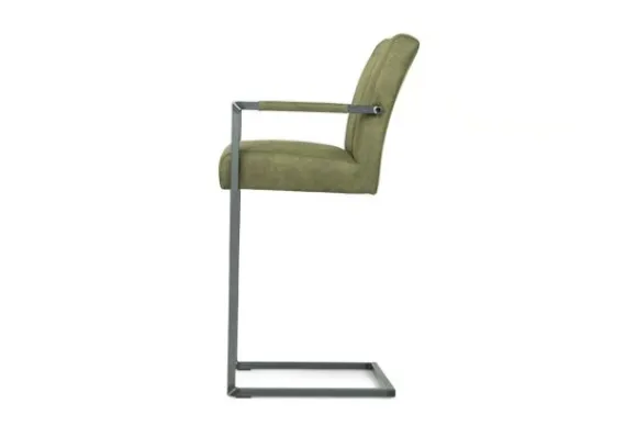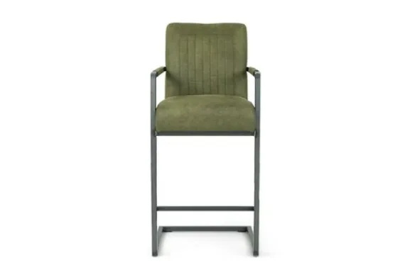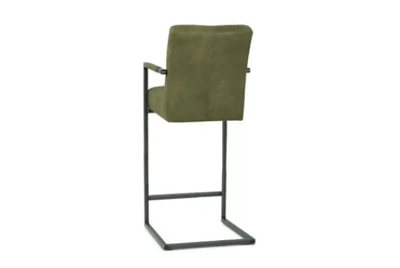 Deze barkruk wordt standaard uitgevoerd met metalen poten in de kleur zwart die zijn voorzien van een voetensteun. Daarnaast heeft de kruk verticale stiksels in kader in de rugleuning en is deze voorzien van armleuningen.