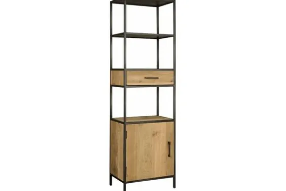 Bergkast Luna NA 0085 van het merk Tower Living is onderdeel van een compleet woonprogramma. Deze meubelen zijn gemaakt van gefineerd eiken en worden gecombineerd met een metalen frame in de kleur gun metal. De prachtige houtkleur is verkregen door het eikenhout te roken. Voor een gemakkelijk onderhoud worden de meubelen met een matte lak afgelakt. Strakke lijnen en natuurlijke kleuren kenmerken deze meubelserie. Deze kast is voorzien van één linksdraaiende deur, één lade en drie open vakken.