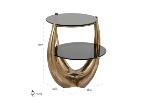 Bijzettafel Aida 212542 van het merk Richmond Interiors is gemaakt van aluminium en glas. De bijzettafel heeft een unieke, sierlijke uitstraling. Een leuke eyecatcher om te decoreren in jouw interieur.