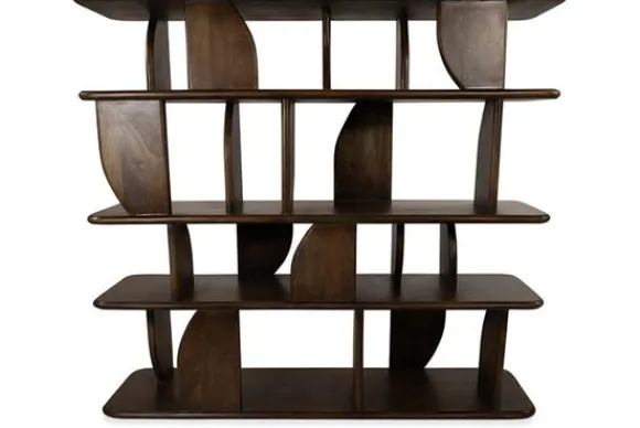 Boekenkast Oregano OGA.BC.0206 van het merk MySons is gemaakt van massief mangohout en straalt warmte en elegantie uit. De diepe bruine kleur en het natuurlijke houtpatroon geven de kast een luxe uitstraling die past in zowel een modern als Japandi interieur.