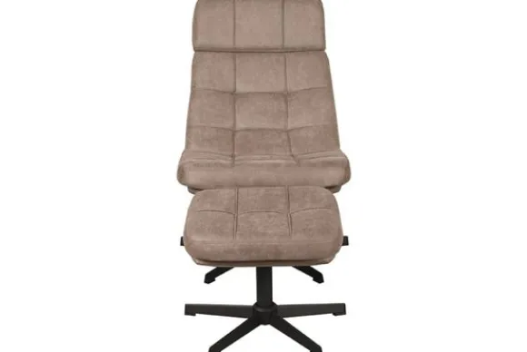 Draaifauteuil Alvar Taupe Micro Suede CH-73.028 met hocker van het merk LABEL51, uitgevoerd in Dalton Taupe 5, staat voor comfort en stijl. Deze fauteuil is niet alleen strak in zijn design, maar nodigt ook uit voor ultieme ontspanning door de bijgeleverde hocker.
