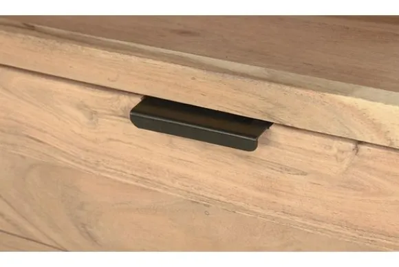 Dressoir Oslo van het merk Livingfurn is gemaakt van acaciahout in combinatie met gecoat staal. Deze combinatie zorgt voor het stoere uiterlijk van deze kast. Acaciahout is een duurzaam natuurproduct, elk stuk is hierdoor uniek. Na verloop van tijd krijgt deze houtsoort een warmere kleur. Je kunt dit hout makkelijk schoonmaken met een zachte vochtige doek. Deze kast heeft diverse opbergmogelijkheden, namelijk één groot open vak, drie lades en twee deuren.