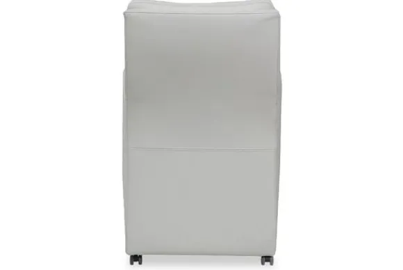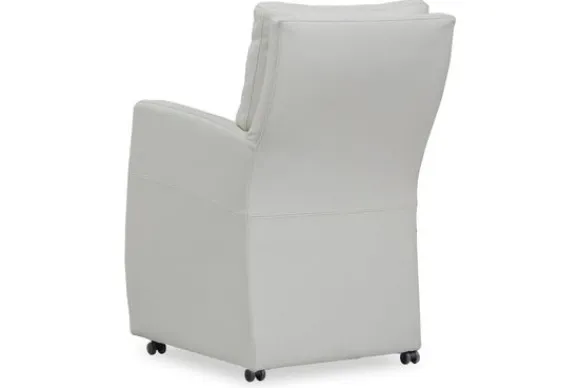 Deze stoel wordt standaard uitgevoerd met glijdoppen en zonder handgreep op de rugleuning.
