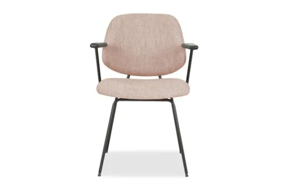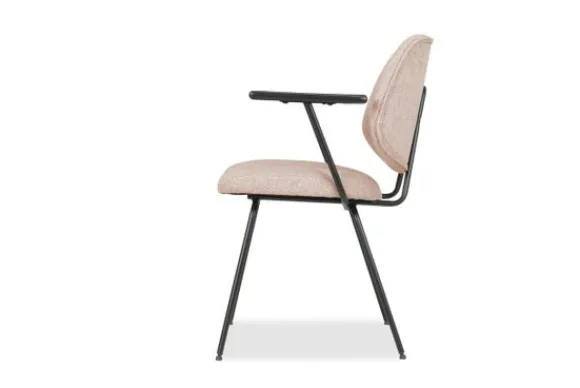 Eetkamerstoel Lynn pink fletcher 95570 van het merk Eleonora is beschikbaar in verschillende kleuren. Deze eetkamerstoel is bekleed met een roze stof die je kunt schoonmaken met een droge doek. De stoel heeft metalen poten en metalen armleuningen met houten armleggers. Lynn heeft een ruimtelijke uitstraling doordat de zitting en de rugleuning met elkaar verbonden zijn via het metalen frame en niet gelijk in elkaar overlopen.