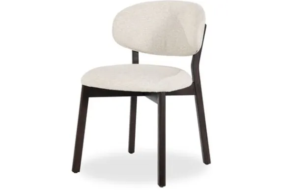 De zachte, neutrale bekleding in combinatie met de afgeronde rugleuning en het minimalistische design geeft Mikky een tijdloos karakter, geschikt voor zowel eetkamer als woonkamer.