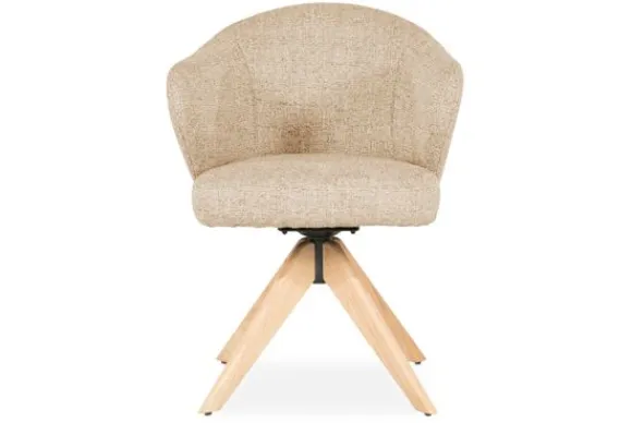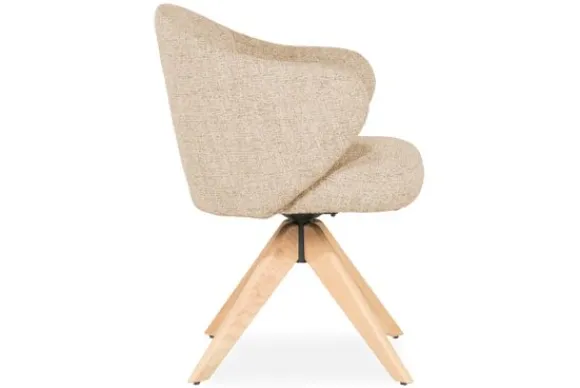 Wat deze uitvoering bijzonder maakt, is de massief eikenhouten poot in naturel tint. De houtnerf voegt een natuurlijk en rustgevend element toe aan het ontwerp, en zorgt voor een harmonieuze balans tussen Scandinavische eenvoud en hedendaags comfort. Dankzij de 180 graden draaifunctie combineert deze stoel functionaliteit met een speelse dynamiek.