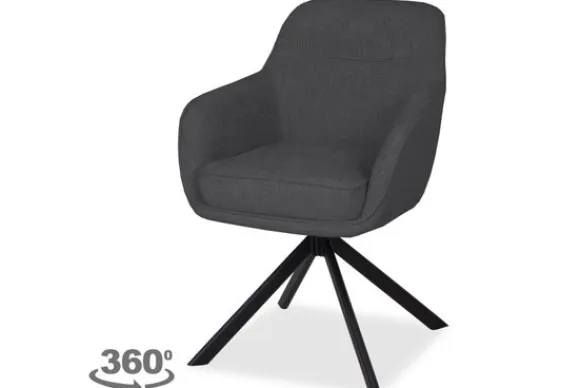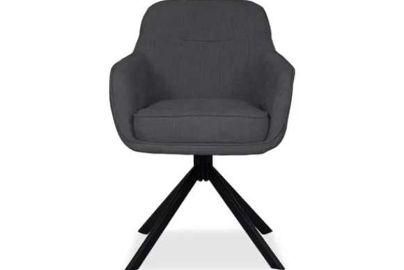 Eetkamerstoel Irene Baltic 0225 antraciet van het merk Wowen is beschikbaar in drie verschillende kleuren. De hoge zwart metalen poten zorgen er voor dat de stoel er ruimtelijk uitziet. Deze stoel is 180 graden draaibaar en is voorzien van autoreturn. Door het terugdraaisysteem kun je de zitting van de stoel draaien en daarna zal deze uit zichzelf weer terug draaien naar het midden. De stoel heeft een verticale inkeping in de rugleuning wat voor een leuk detail zorgt en is voorzien van armleuningen.