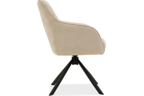 Eetkamerstoel Madie Beige Maloy 24 van het merk Elviro Style heeft een zachte en hedendaagse uitstraling met een tijdloos en elegant karakter. De comfortabele kuipvorm met armleuningen biedt prettig zitcomfort en geeft de stoel een luxe uitstraling.