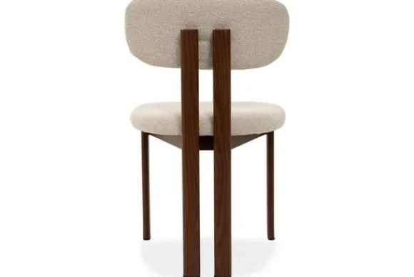 Eetkamerstoel Lynja van het merk Studio Japandi is een moderne stoel met een subtiele, natuurlijke uitstraling. De zitting en rugleuning zijn bekleed met stof Harper 110, een zachte tint die warmte toevoegt aan de eetkamer.