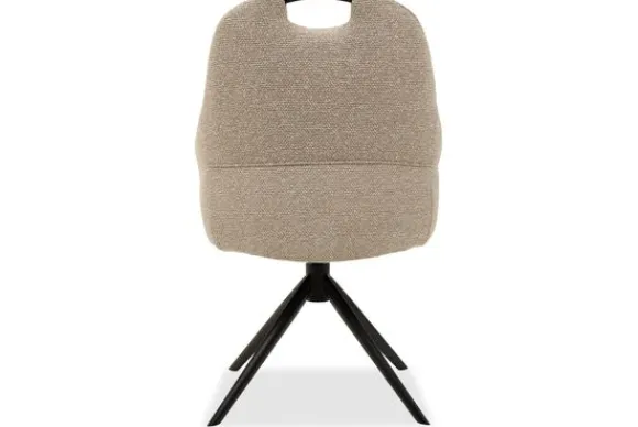 Eetkamerstoel Cronos van het merk Elysia is een comfortabele stoel met een handvat bovenaan de rugleuning. De ronde kuip sluit mooi aan en de armleuningen geven fijne steun.