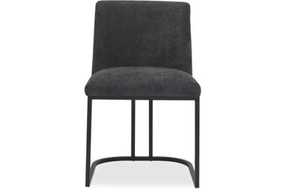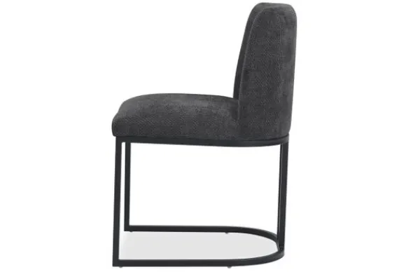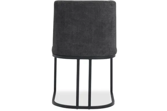 Eetkamerstoel Archi AM 0021 van het merk Tower Living is een krachtige verschijning met een luxueuze uitstraling. De diepe graphitekleurige bekleding in combinatie met het ranke, zwarte metalen frame zorgt voor een uitgesproken, moderne look die naadloos aansluit bij een industrieel of modern interieur.