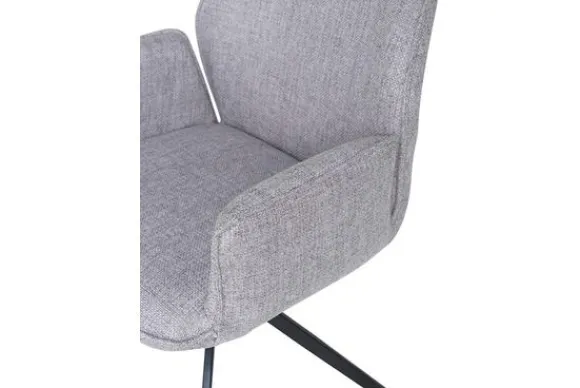 De combinatie van de verfijnde grijze bekleding en het zwarte metalen onderstel geeft deze eetkamerstoel een stoer en toch tijdloos karakter.