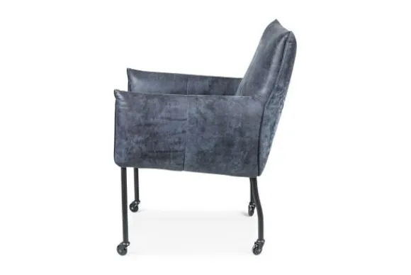 Deze stoel wordt standaard geleverd met zwarte rechte poten met wielen en een geknepen naad. Er kan gekozen worden voor andere poten of een dichte naad onder “Extra Opties”. Ook kan er hier gekozen worden om de stoel 5 cm extra zitbreedte te geven.