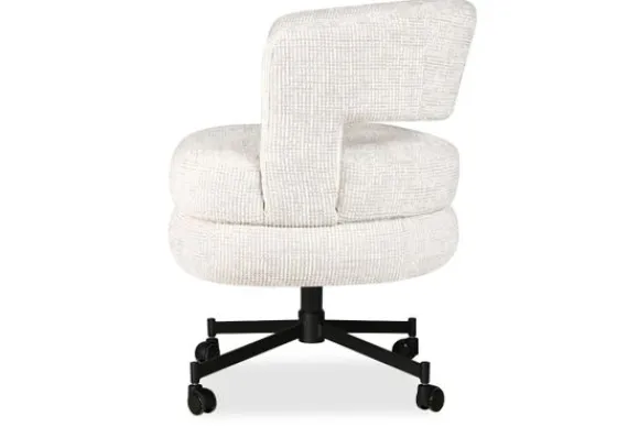 De afgeronde rugleuning met open rug geeft de stoel een luchtige en hedendaagse uitstraling. De royale zitting biedt optimaal comfort, terwijl het onderstel verkrijgbaar is in meerdere pootkleuren, met of zonder wieltjes. De zitvulling is uitgevoerd met koudschuim en pocketvering, wat zorgt voor veerkrachtig zitcomfort en langdurige ondersteuning.