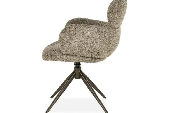 Het metalen onderstel met draaifunctie geeft de stoel een eigentijdse look en extra gebruiksgemak. Eetkamerstoel Darcio combineert comfort en karakter op een stijlvolle manier.