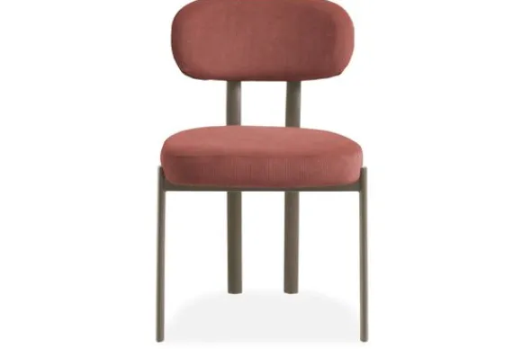 Eetkamerstoel Ravon van het merk Kaizen Design combineert modern comfort met een stijlvolle uitstraling. De zitting is uitgevoerd in de zachte kleur Wave Burned Orange en rust op een stevige metalen poot in Anodic Brown.
