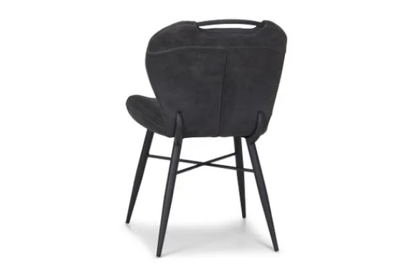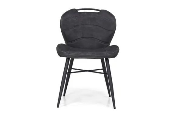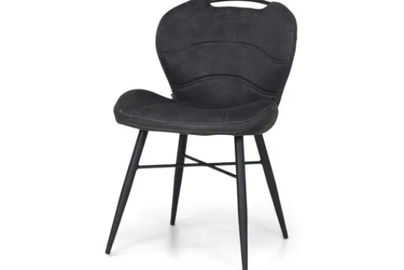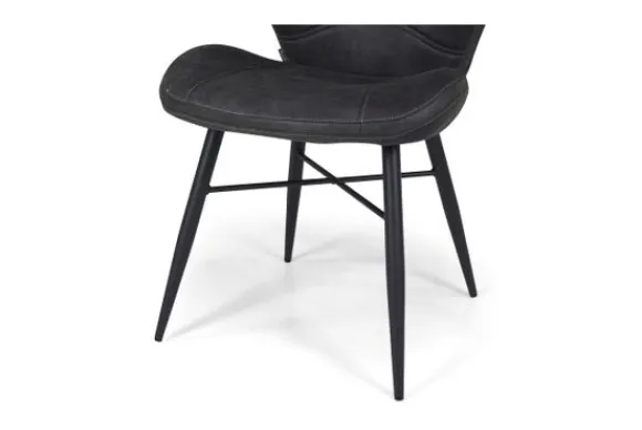 Eetstoel Bray van het merk Olijk verkrijgbaar in de kleur antraciet en is bekleed met microvezel. Deze eetstoel heeft zwarte metalen poten.