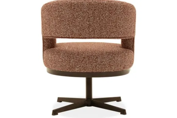 De stoel is verkrijgbaar in populaire materialen zoals bouclé, velvet en microleder. Daarnaast kun je kiezen uit een ruim aanbod aan kleuren. Het metalen onderstel is beschikbaar in zwart of Anodic Brown.