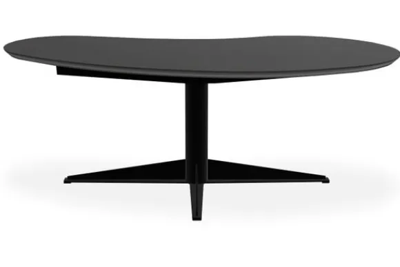 De centrale poot met speels onderstel zorgt voor veel ruimte rond de tafel. Je kunt er makkelijk omheen zitten en hij staat stevig op zijn plek. Door de bijzondere vorm van het blad en het slanke ontwerp past deze tafel perfect in een modern interieur. Tegelijk voegt hij met zijn eigenzinnige vorm en mix van materialen een eclectisch tintje toe aan de ruimte.