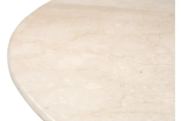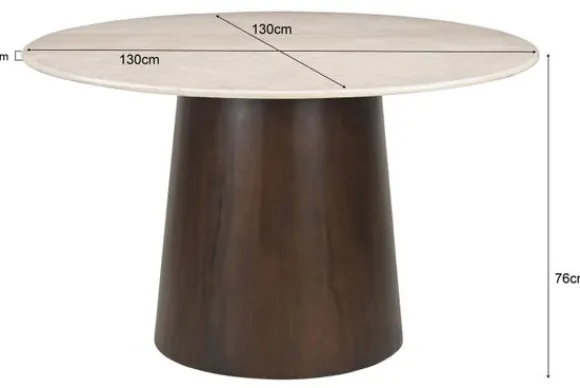 Eettafel Bottecino van het merk Livingfurn heeft een rond blad van marmer en een stevige poot van mangohout. Het marmer geeft iedere tafel een eigen uitstraling door de natuurlijke aders en kleurnuances. Het lichte blad en het donkere hout vormen samen een luxe en warme combinatie.