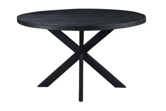 Eettafel Kala van het merk Livingfurn is een stoere eettafel met een rond blad en een krachtige uitstraling. De tafel staat op een centrale spinpoot, waardoor je rondom eenvoudig eetstoelen kunt plaatsen. Dankzij de ronde vorm is deze eettafel geschikt voor verschillende ruimtes en past hij goed binnen een modern of industrieel interieur.