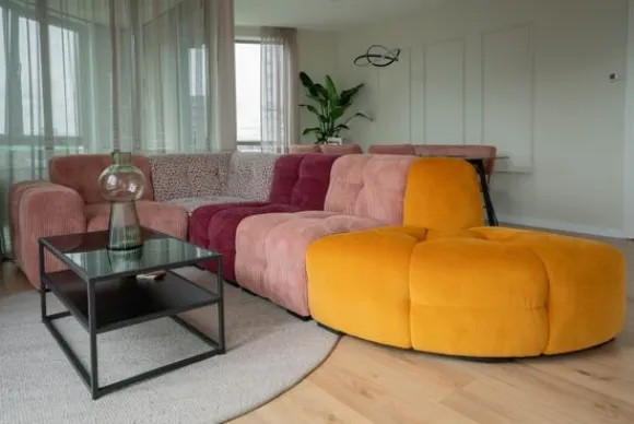 Je kunt kiezen uit verschillende materialen, waaronder rundleder en stoffen als velvet en boucle. Daarnaast is de bank verkrijgbaar in een breed scala aan kleuren. Je kan bij deze bank kiezen om alle elementen in dezelfde kleur te laten stofferen, of juist in verschillende kleuren.