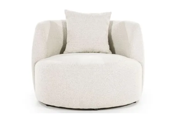 Fauteuil Louis beige Spark 95804 van het merk Eleonora is beschikbaar in verschillende kleuren. De stoel is bekleed met een zachte teddystof. Deze fauteuil heeft ronde vormen, de rugleuning loopt rondom de zitting door in de armleuningen. De stoel wordt geleverd inclusief één sierkussen.