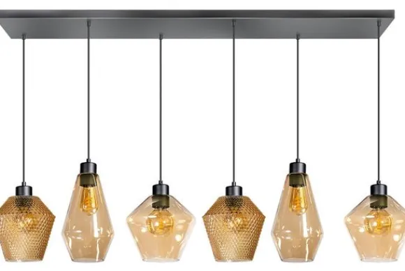 Hanglamp Origin & Bendy van het merk ETH wordt standaard geleverd met zes amberkleurige, glazen lampenkappen. De lamp is exclusief lichtbronnen, met de zes E27 fittingen heb je een ruime keuze en kun je zelf bepalen wat voor licht je wilt van deze lamp. De kabel is maximaal 200 cm lang en is in hoogte te verstellen.