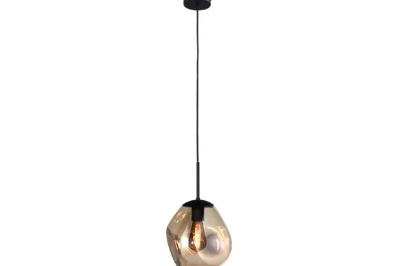 Hanglamp Lava 2760-05-02-61 van het merk Masterlight is een unieke lamp met een chique uitstraling. Het prachtige glas is mond geblazen in Italië. De basis is van metaal en uitgevoerd in de kleur zwart. De glazen lampenkap heeft een diameter van 24 centimeter en is 23 centimeter hoog. Door de vorm en kwaliteit van het glas is deze hanglamp een echte eyecatcher! Het gedeukte glas geeft de lamp een speelse look die goed te combineren is in verschillende interieurs. Hang de lamp boven je eettafel of in de gang. De lamp heeft een E27 fitting en wordt zonder lichtbron geleverd.