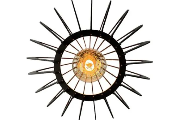 Hanglamp 2880-05-05-35 Ufo van het merk Masterlight is een unieke en stoere hanglamp. De lampenkap heeft een diameter van 35 centimeter. Met zijn open speels ontwerp steelt deze hanglamp de show zowel als hij aan als uit staat. Door de onderkant van de lampenkap is het net alsof je de zon in huis haalt. Hang de lamp boven je eettafel of in de gang. De hanglamp komt goed tot zijn recht in verschillende soorten ruimtes. Er zit geen lichtbron bij deze lamp. Laat je fantasie de vrije loop en maak de lamp compleet door bij “kies je extra’s” je unieke lichtbron uit te kiezen.