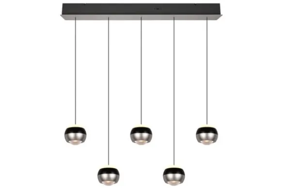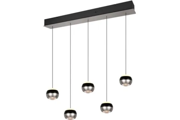Hanglamp Orbit van het merk Trio Lighting zal in elke woonruimte indruk maken door het stijlvolle ontwerp. De lamp met de vijf lampenkappen heeft een up- en down-licht waarmee een sfeervolle achtergrond van licht wordt gecreëerd. Er zit een DIP SWITCH op waar je direct op het armatuur kan kiezen uit drie verschillende lichtkleuren om de gewenste sfeer te creëren. De helderheid kies je met gemak in drie stappen met de lichtschakelaar. Bovendien kan je naar wens zelf de hoogte van de hanglamp simpelweg aanpassen door deze eenvoudig omhoog te schuiven of omlaag te trekken. De stijlvolle hanglamp heeft moderne LED-technologie, die wordt gekenmerkt door een hoge lichtkwaliteit en energie-efficiëntie.