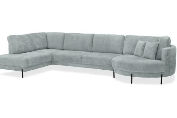 Hoekbank Nayla van het merk Givenchie is een moderne bank met ronde en rechte elementen.