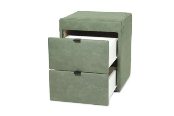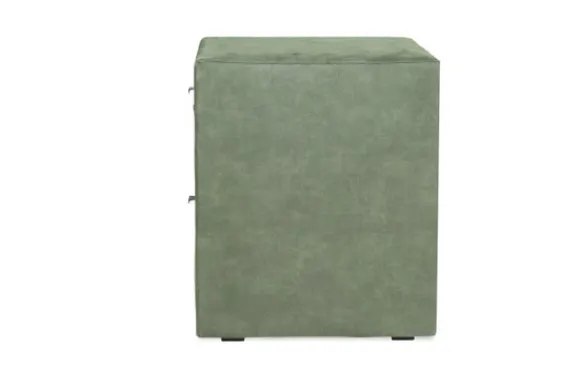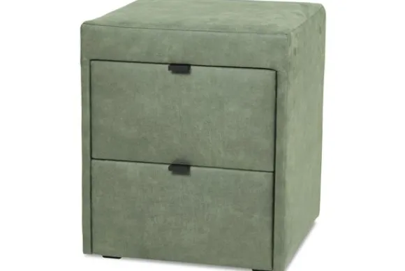 Nachtkast Calinda van het merk Eco Bedding is beschikbaar in alle kleuren en in verschillende materiaalsoorten zoals stof, kunstleder en rundleder. Je kunt kiezen uit twee kleuren voor de greepjes, waardoor het kastje mooi aansluit bij jouw interieurstijl.