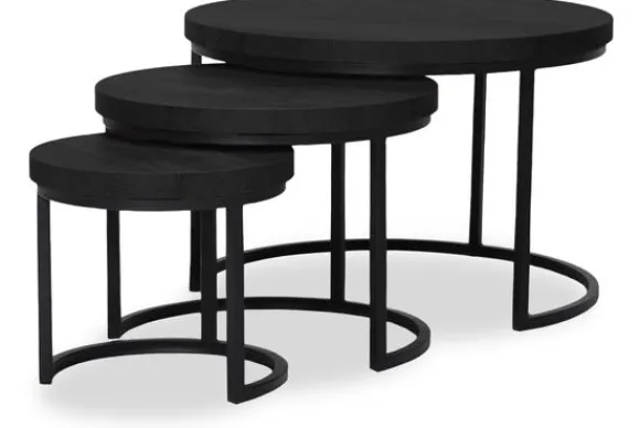 Salontafelset Hugo van het merk Lamulux bestaat uit 3 stijlvolle ronde tafels in verschillende hoogtes en diameters, uitgevoerd in de kleur Old Piano. De afmetingen van de tafels zijn: Ø40 x H37 cm, Ø55 x H44 cm en Ø75 x H51 cm.