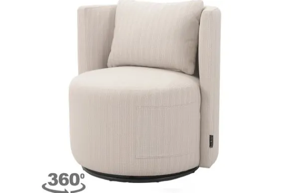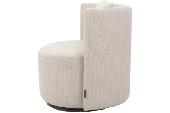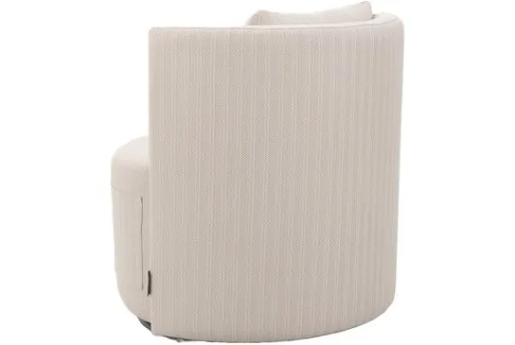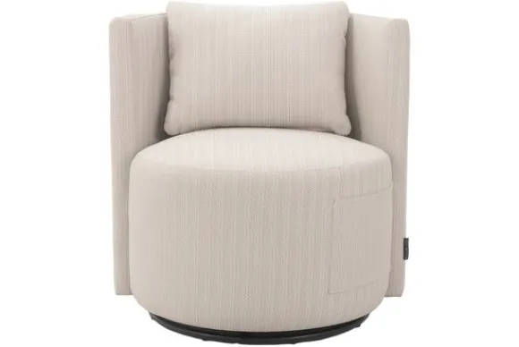 Het minimalistische ontwerp wordt versterkt door de subtiele textuur van de bekleding, waardoor de stoel een verfijnde uitstraling krijgt. Dankzij het draaibare onderstel biedt de Marlin niet alleen flexibiliteit maar ook een speels en dynamisch element aan je buitenruimte. De stoel komt inclusief een beschermhoes en een kussen.