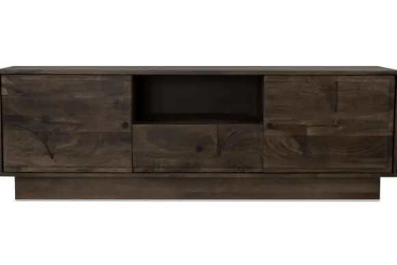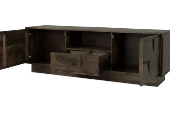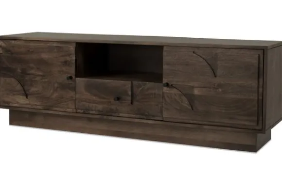 De TV-meubel is gemaakt van mangohout, een duurzame houtsoort. Mangohout kun je herkennen aan de vele kleurschakeringen en ongelijkheden in het oppervlakte van het hout, waardoor geen enkel meubelstuk hetzelfde is. De kleuren in mangohout kunnen variëren van licht- tot donkerbruine tonen.
