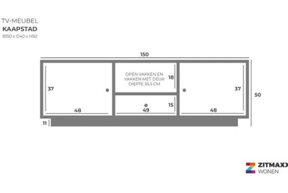 TV-meubel Kaapstad KPS.TV.0004 van het merk MySons heeft een hedendaags ontwerp. Het TV-meubel heeft 1 open vak, 2 deuren met softclose systeem en 1 lade. Het dressoir biedt veel opbergruimte en brengt warmte en verfijning in het interieur met een unieke ontwerp en de rijke houtstructuur.