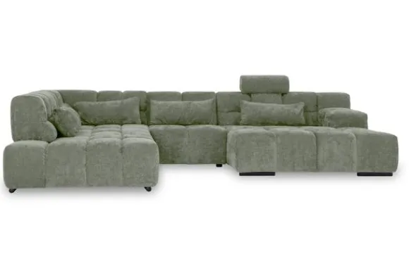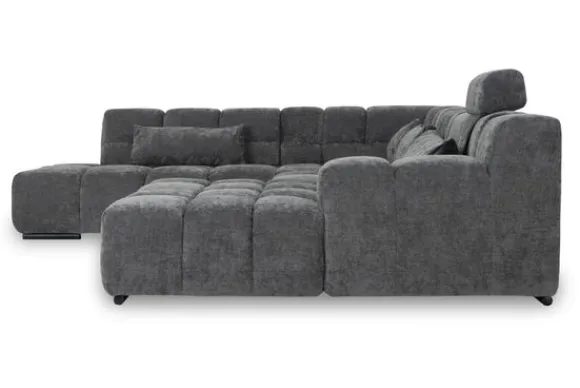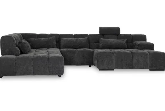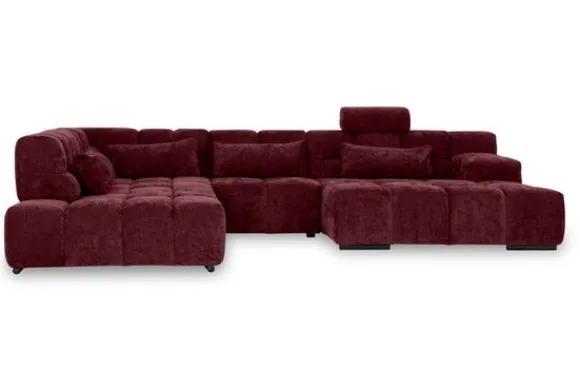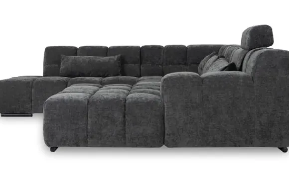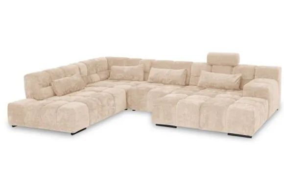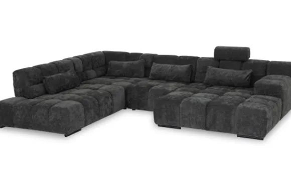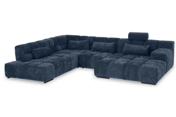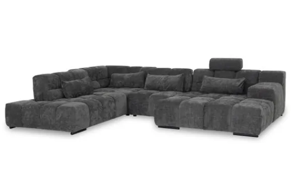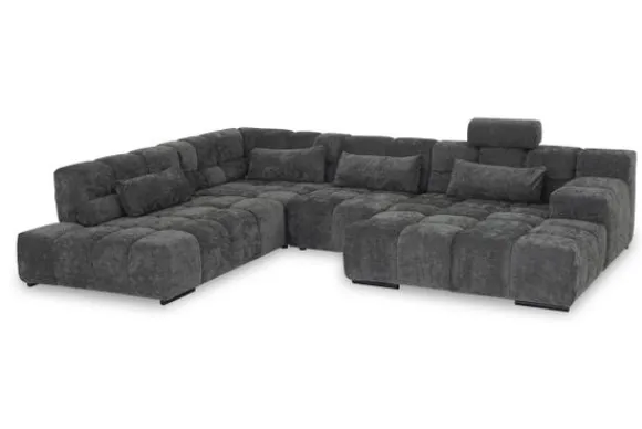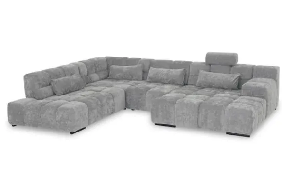 Dit bankstel is samen te stellen in vele afmetingen en verschillende opstellingen, of kies uit een van de standaard opstellingen. Ook kan je kiezen uit mat zwarte of chroom pootjes en zijn er bijpassende hoofdsteunen, sier- en lendekussens en poefjes beschikbaar. Deze worden uitgevoerd in dezelfde stof als de bank.