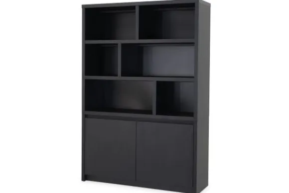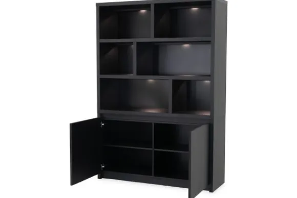 Vakkenkast Jelco – Milanello van het merk Lamulux is uitgevoerd in de kleur Noir. De kast heeft zes open vakken en twee deuren met daarachter extra opbergruimte. Optioneel kun je dimbare led verlichting toevoegen om jouw accessoires mooi uit te lichten.