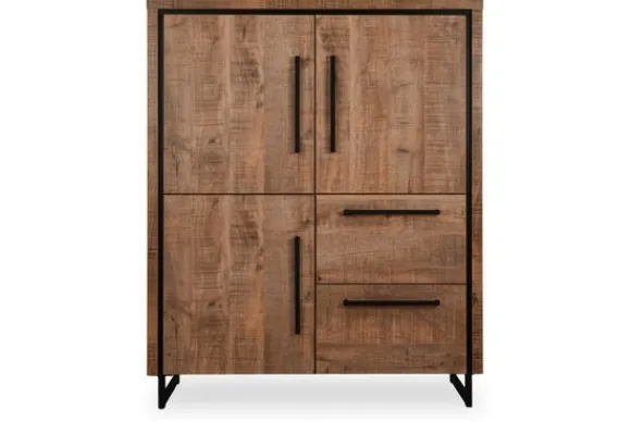 Barkast Lingo – Rimini van het merk Lamulux is uitgevoerd in de kleur Mango en heeft een stoere uitstraling. De kast staat op zwarte metalen sledepoten en biedt praktische opbergruimte met drie deuren en twee lades. De smalle metalen handgrepen zorgen voor een strak en eigentijds accent.