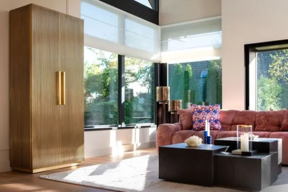 Wandkast Ironville 211719 van het merk Richmond Interiors is een unieke wandkast met een jaren 60 stijl dat in een nieuw jasje is gestoken. De wandkast heeft een luxueuze uitstraling door zijn strakke vorm gecombineerd met het ribbelmotief in de antieke messingkleur. De wandkast is voorzien van twee deuren met daarachter vier planken om je spullen op te bergen. De bovenste twee opbergplanken hebben een afmeting van B76xD33xH49 cm en de onderste twee opbergplanken hebben een afmeting van B76xD33XH38 cm.