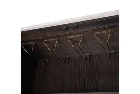 Wandkast Claremont 212819 van het merk Richmond Interiors is gemaakt van eikenhout. Eikenhout leeft en geeft hierdoor karakter aan jouw meubelstuk. Daarnaast is elk stuk uniek door de nerven en noesten. Het blad is gemaakt van steen, door de combinatie met eikenhout krijgt deze kast een strakke, romantische uitstraling. De kast is aan de binnenkant voorzien van twee planken die ervoor zorgen dat de ruimte in drieën wordt gedeeld. Aan de bovenzijde van de kast hangen haken voor je glazen op te hangen. Door deze ruimteverdeling heb je genoeg opbergruimte voor je spullen.