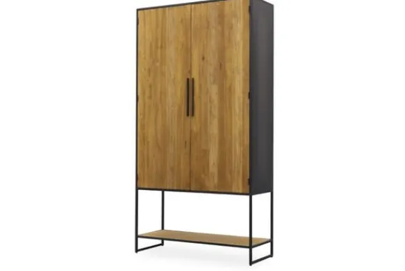 Opbergkast Felino FI 0059 van het merk Tower Living ademt karakter en functionaliteit in een stijlvol samenspel van materialen. De warme teakkleurige deuren tonen een levendig houtpatroon dat contrasteert met het slanke, zwartmetalen frame. Deze subtiele dialoog tussen licht en schaduw geeft de kast een hedendaags silhouet met een stoere twist. De open onderplank voegt een luchtig element toe aan het ontwerp en biedt ruimte voor decoratieve objecten of extra opbergruimte.
