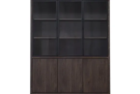 Bergkast Established van het merk Van Dijk Furniture is verkrijgbaar in verschillende kleuren 100% massief eikenhout. Eikenhout leeft en geeft hierdoor karakter aan jouw meubelstuk. Daarnaast is elk stuk uniek door de nerven en noesten. Deze kast heeft onderin drie deuren en hierboven twee horizontale legplanken en een verticale plank achter glazen deuren. De dichte deuren zijn te openen met een push to open systeem.