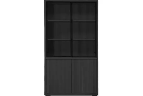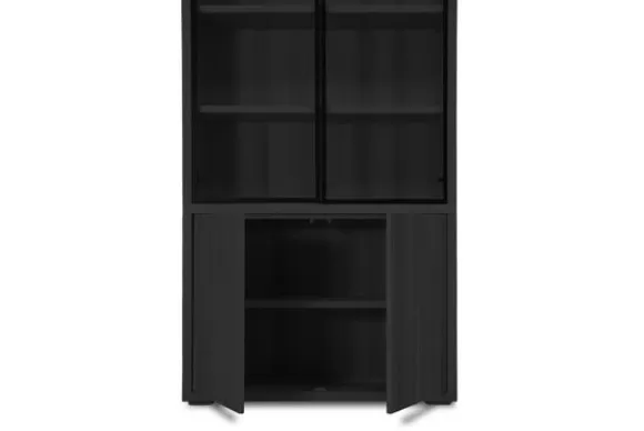 Vitrinekast Established van het merk Van Dijk Furniture is verkrijgbaar in verschillende kleuren 100% massief eikenhout. Eikenhout leeft en geeft hierdoor karakter aan jouw meubelstuk. Daarnaast is elk stuk uniek door de nerven en noesten. Deze kast heeft onderin twee deuren en hierboven drie open vakken achter glazen deuren. Veel display en opbergmogelijkheden dus! De dichte deuren zijn te openen met een push to open systeem.