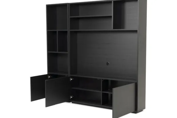 Tv-kast Boscari-Blackburn is ontworpen met oog voor praktisch gebruik en stijlvol design. Het onderste gedeelte bestaat uit vier deuren die voorzien zijn van een handig push-to-open systeem, waardoor grepen overbodig zijn en de strakke uitstraling behouden blijft. Daarnaast zijn de deuren uitgerust met een softclose functie, zodat ze geruisloos en soepel sluiten.
