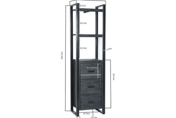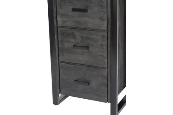Boekenkast Norris van het merk Livingfurn is een compacte opbergkast die geschikt is voor gebruik in de woonkamer, werkkamer of eetkamer. De combinatie van mangohout en zwart gecoat staal sluit goed aan bij een modern of industrieel interieur.